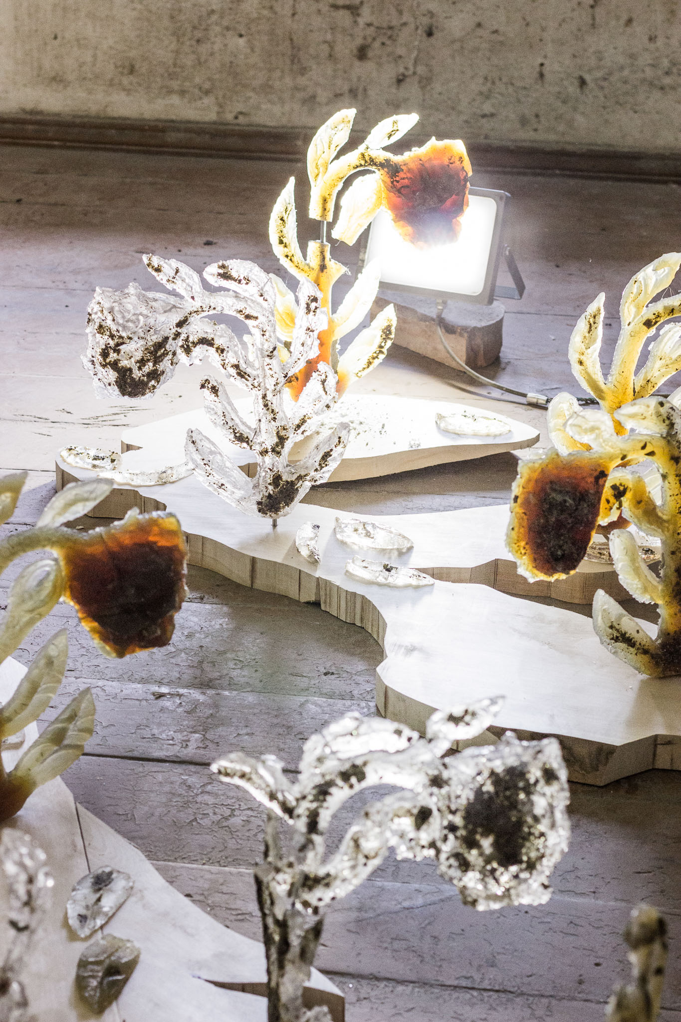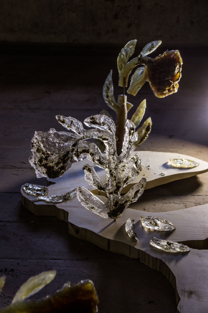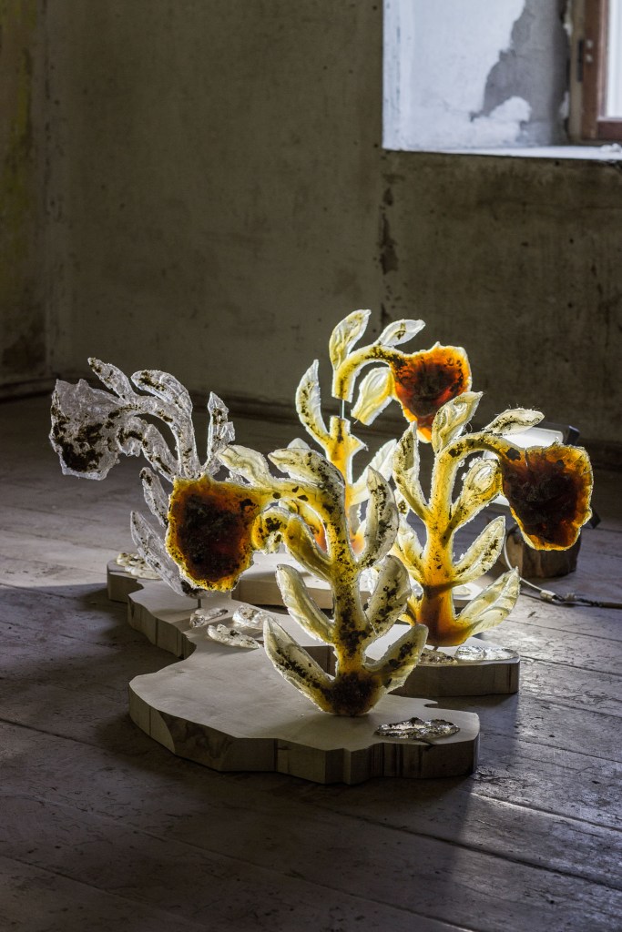Polyester resin – 33 x 38 x 8 cm, Inkjet print – 100 x 66 cm, 50 x 50 cm, 35 x 50 cm, Wood – dimentions vary.